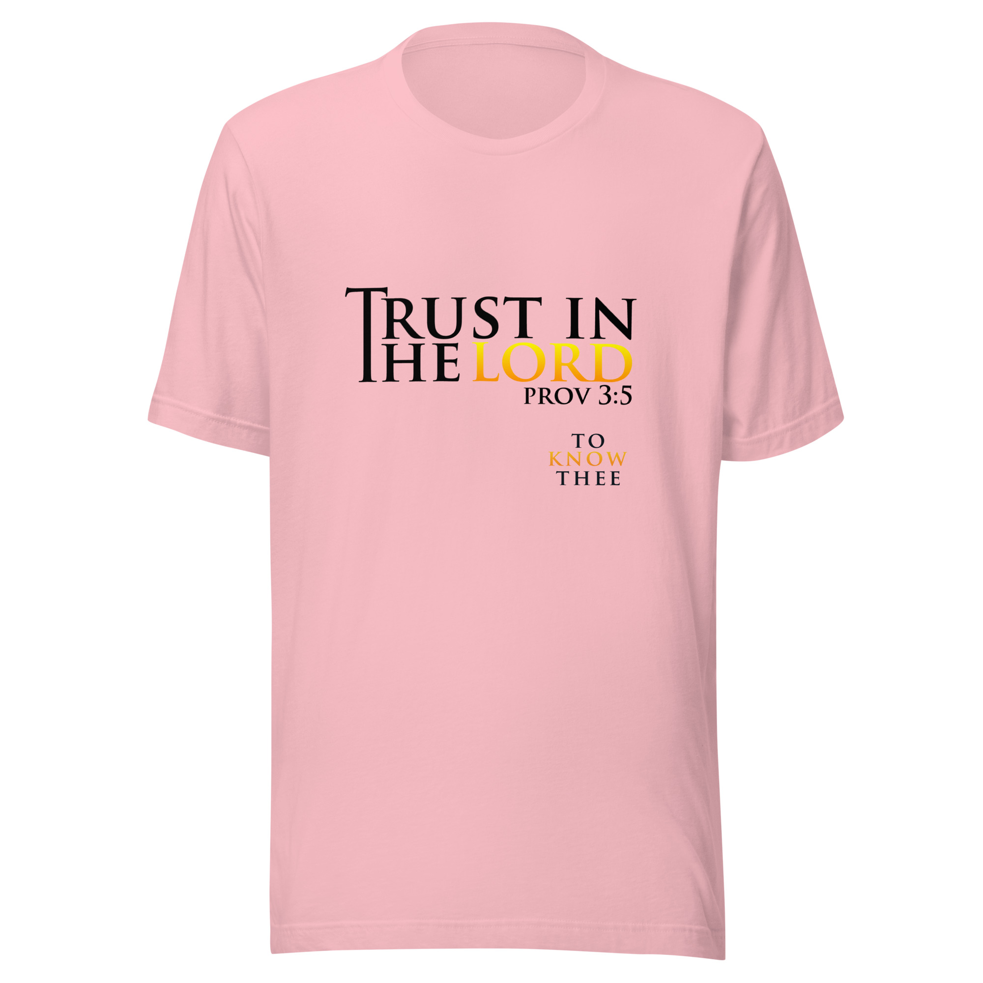 Proverbs 3 Tells us that we need to Trust in the Lord, and this Trust in the Lord shirt from To Know thee will remind you and everyone that sees you that God is guiding and protecting you. God has a plan for your life, just as he did for all of the prophets and people in the bible, he has a plan for you.